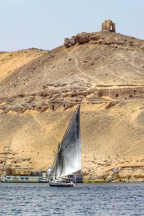 Nilfeluke vor den Felsengräbern von Assuan ...