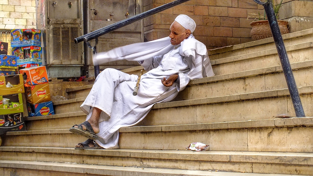 Ausruhen auf den Stufen der Moschee in Assuan ...