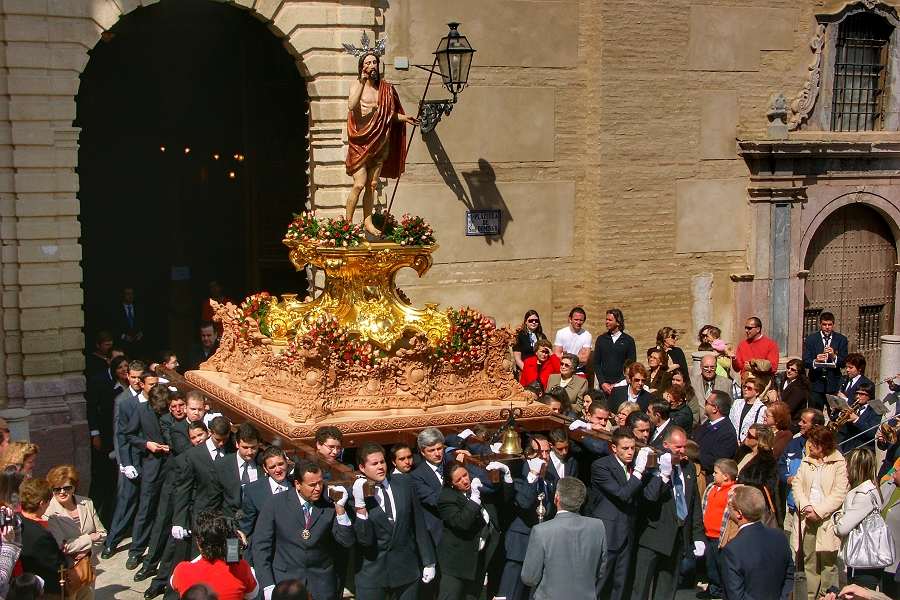 Ostern in Antequera: Der erste Prozessionswagen zieht aus der Kirche ...