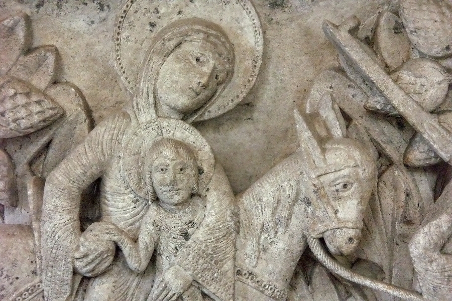 Figurenkapitell der Kathedrale von Autun: Flucht der heiligen Familie nach Ägypten ...