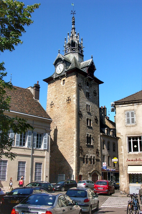 Beaune: an der Place Monge steht der Beffroi, ein Stadtturm aus dem 14. Jahrhundert ...