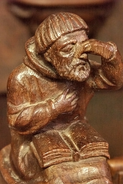 Schnitzerei am Chorgestühl in der ehemaligen Wallfahrtskirche der heiligen Regina in Flavigny-sur-Ozerain ...