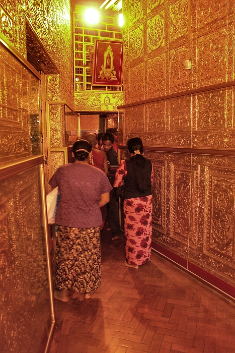 Im Inneren der Botataung Pagode werden die Reliquien, unter anderem auch ein Haar Buddhas, in einem begehbaren Chedi aufbewahrt ...