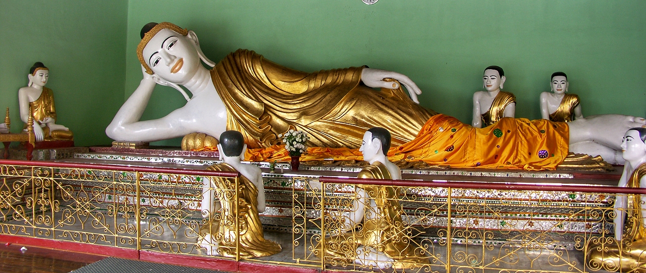 Der Überlieferung zufolge machten sich zwei Kaufleute aus dem Reich König Okkalapas mit einem Schiff auf den Weg nach Indien, wo sie Buddha begegneten und dessen erste Laienanhänger wurden ... | |