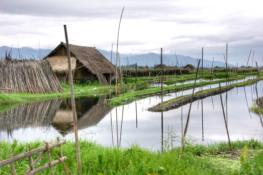 Einmalig in Asien, wurde ein Teil des Inle-Sees in einen Gemüsegarten verwandelt ...