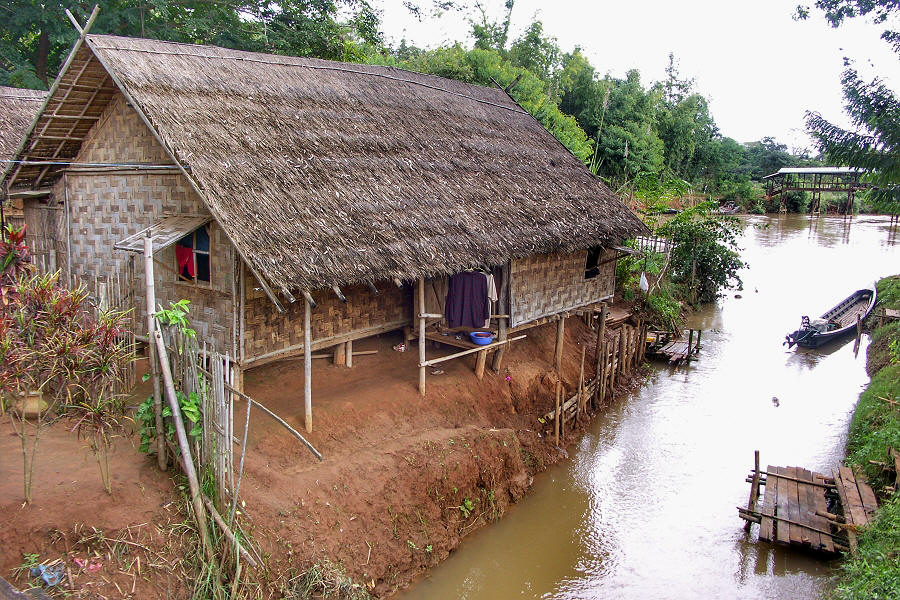 Einfaches Haus aus Palmstrohmatten in Indein ...