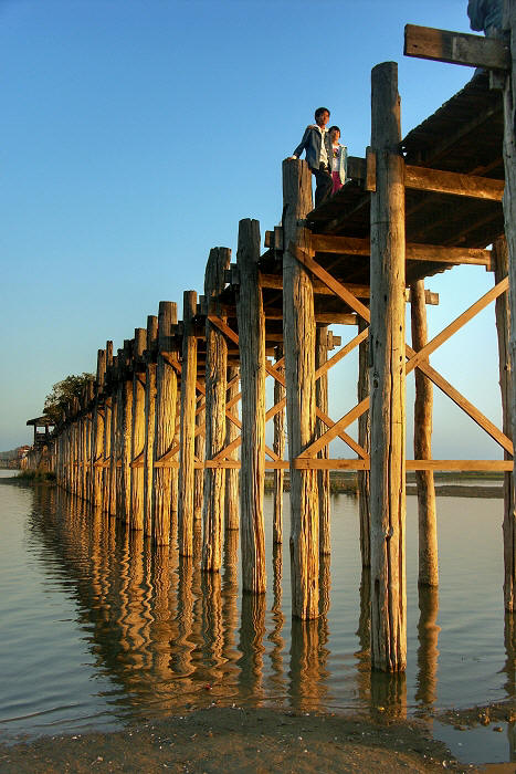 Südlich der alten Königsstadt Amarapura liegt der Taungthaman See, über den die 1200 m lange U-Bein Brücke führt ...