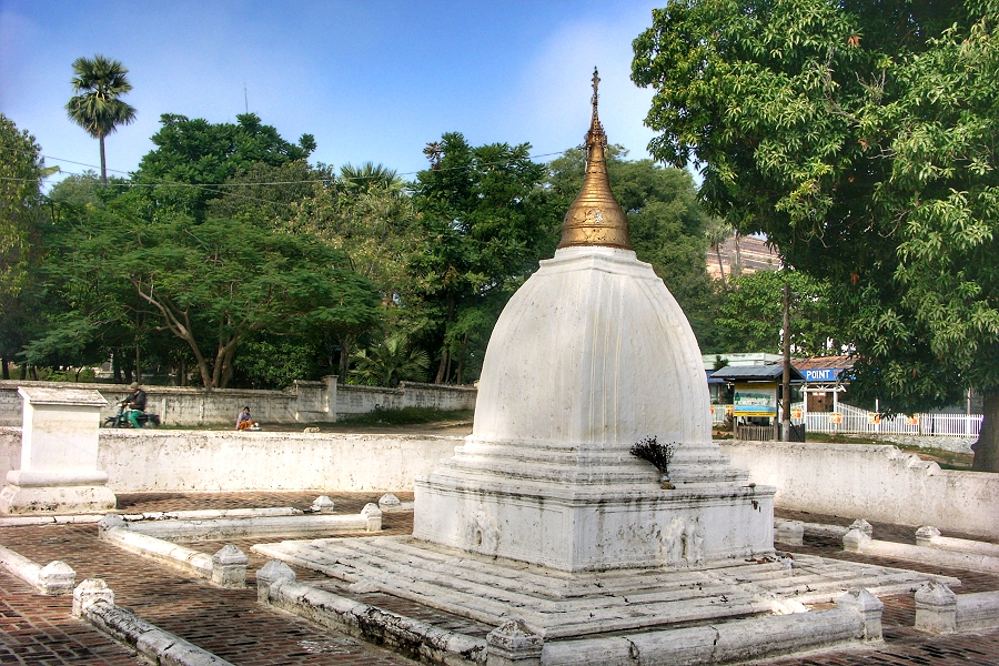 An der südlichen Anlegestelle von Mingun steht die nur 5 m hohe Pondaw-Pagode, die als Modell für die von König Bodawpaya im Jahre 1784 geplante große Mingun Pagode diente ... | |