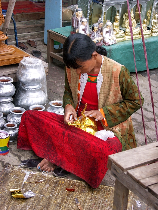 Wenngleich Mandalay in erster Linie eine moderne Stadt ist, so findet man noch viel von dem, was die Städte Asiens so faszinierend macht, wie zum Beispiel die Händler und Handwerker, die am Straßenrand ihren Geschäften nachgehen ...