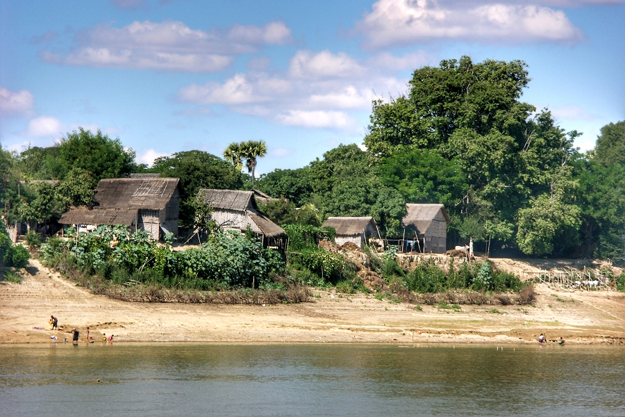 Vereinzelt sieht man kleine Dörfer, die unmittelbar bis an das Ufer des Ayeyarwaddy heranreichen ...