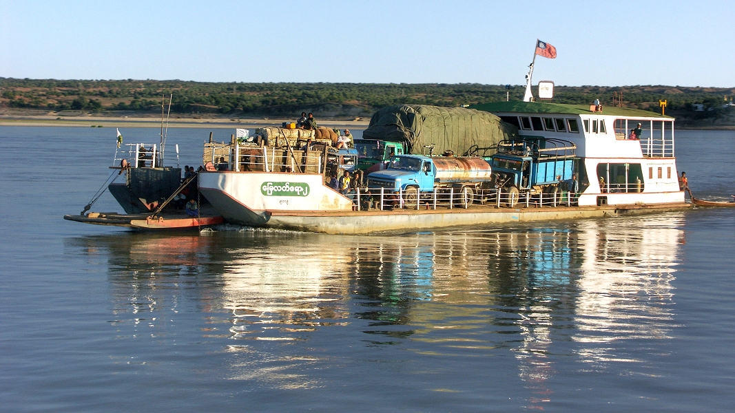 Obwohl der Ayeyarwaddy auch in der Trockenzeit schiffbar bleibt, sieht man nur wenig Güterverkehr ...