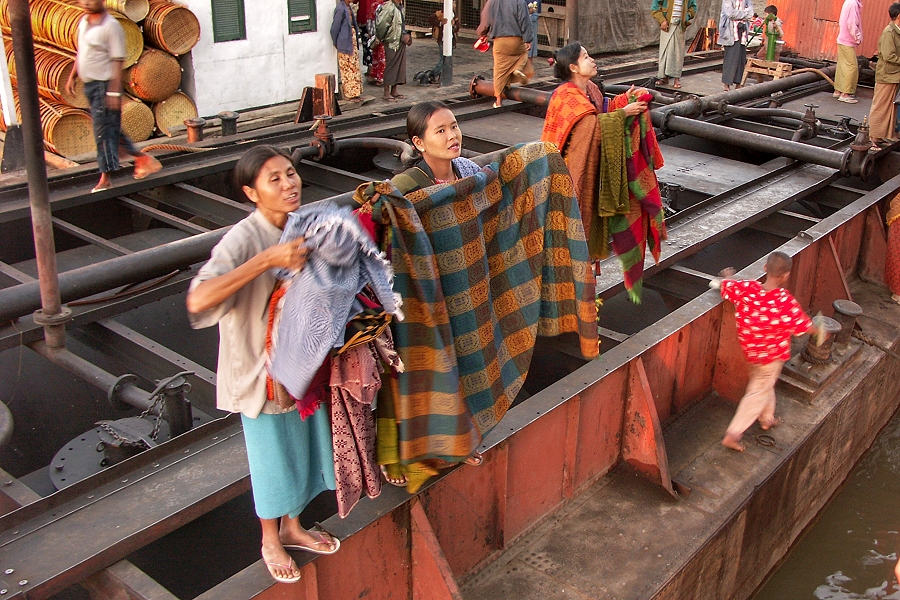 Dort, wo das Boot an einem Kai festmachen kann, bieten die Frauen auch Decken und Kleidung zum Kauf an ...