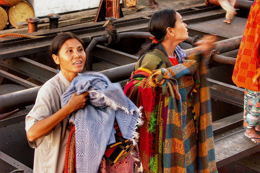 Dort, wo das Boot an einem Kai festmachen kann, bieten die Frauen auch Decken und Kleidung zum Kauf an ...