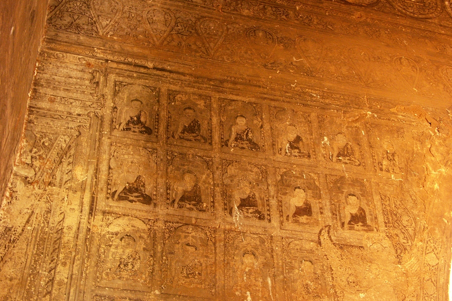 Im Inneren des Thambula Tempels sind noch Reste der ursprünglichen Wandbemalung aus dem 13. Jhdt. zu sehen ...