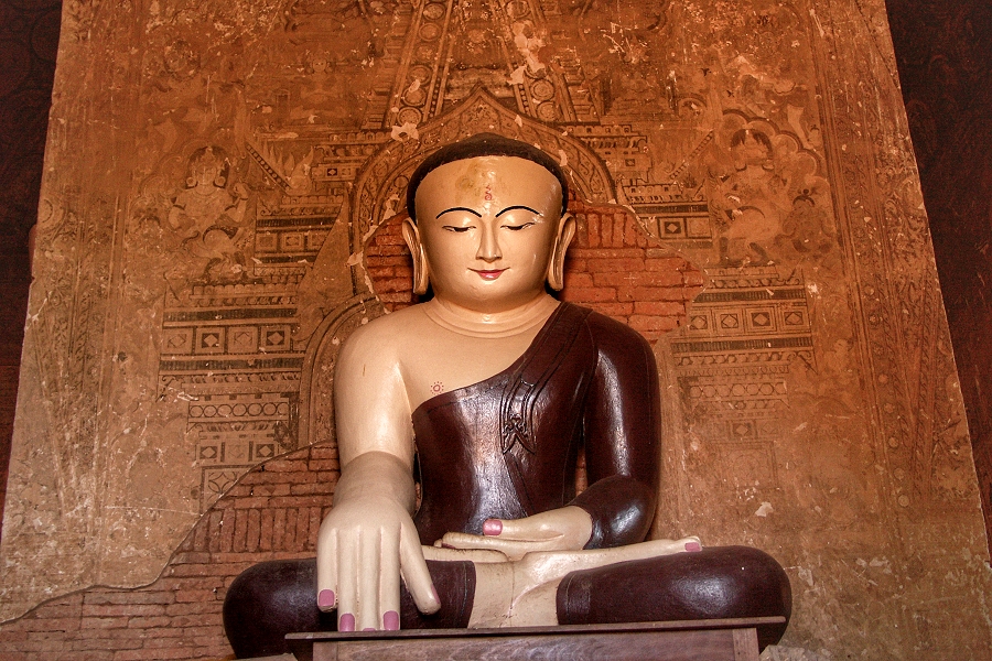 Im Inneren des Thambula Tempels sind noch Reste der ursprünglichen Wandbemalung aus dem 13. Jhdt. zu sehen ...