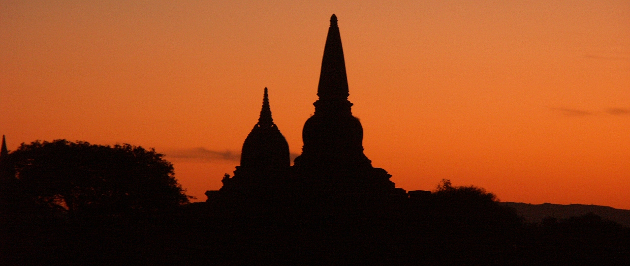 Wenn am Abend die Sonne über Bagan versinkt und sich der Himmel blutrot färbt, scheint die Zeit still zu stehen ...