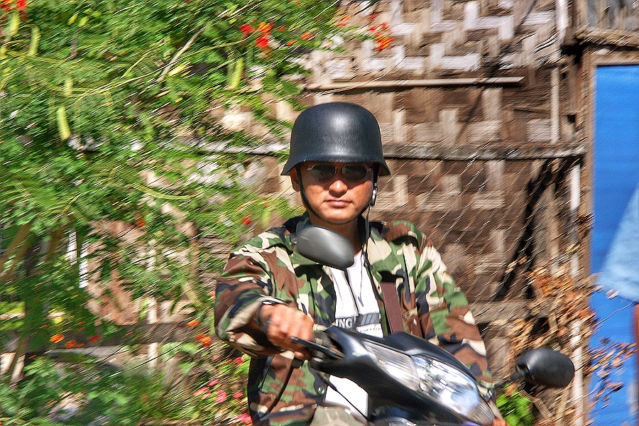 Motorradfahrer mit 'Wehrmachtshelm' in Kyauktan ...