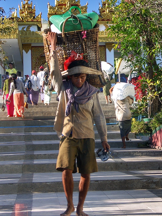 Auf dem Fußweg zum Goldenen Felsen: Je nach Wetterlage ist das Tragen der Lasten auch für die, die es gewohnt sind, eine schweißtreibende Angelegenheit ...