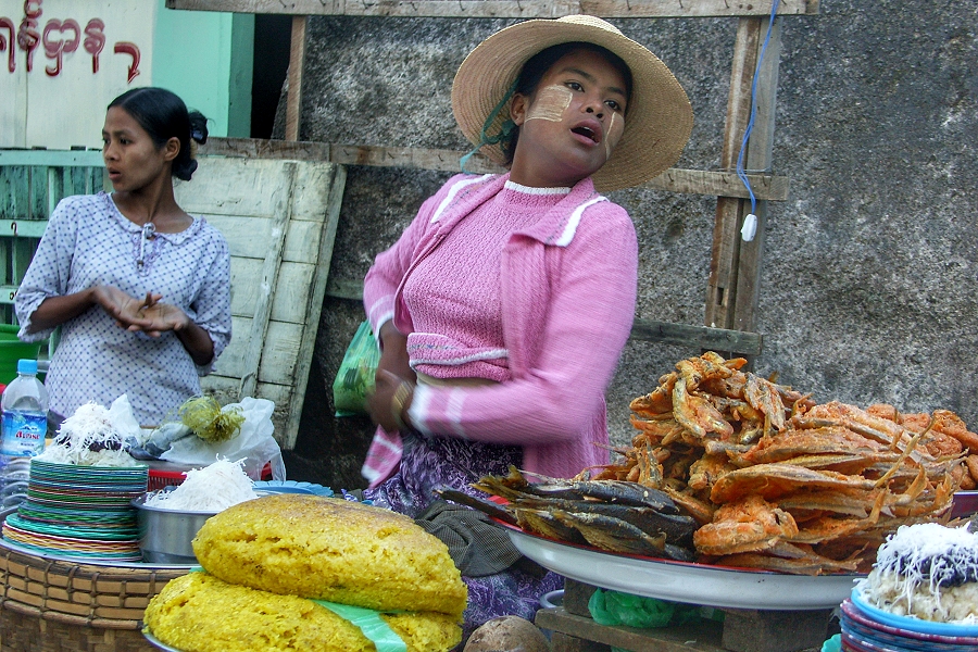 Unterhalb des Goldenen Felsens reihen sich Stand an Stand und locken mit den Köstlichkeiten Asiens, die allerdings nicht immer den europäischen Geschmack treffen ... | |