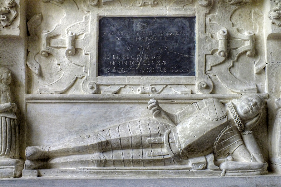 St Swithin's, Launcells: Grabmal für Sir John Chamond (1488-1544), Ritter des Johanniterordens und Lord of the Manor ...