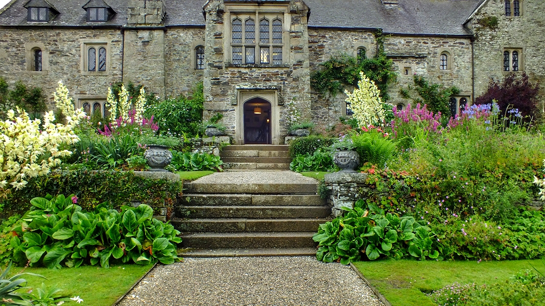 Gartenseite von Cotehele Manor ...