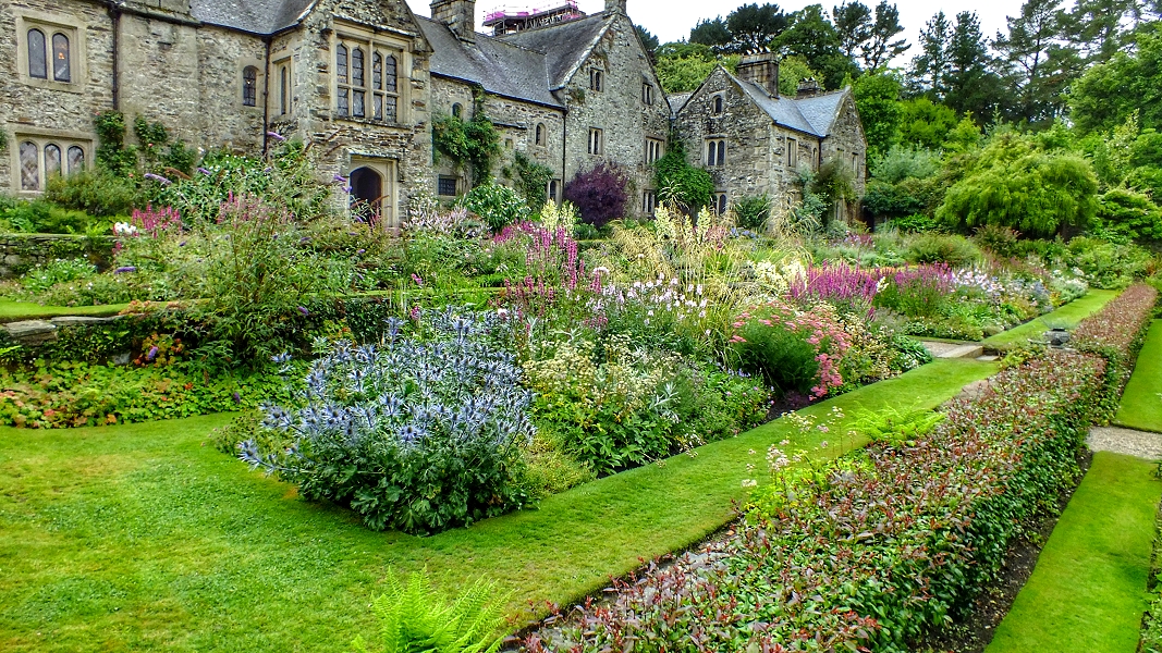 Gartenseite von Cotehele Manor ...