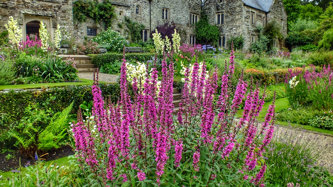 Gartenseite von Cotehele Manor ...