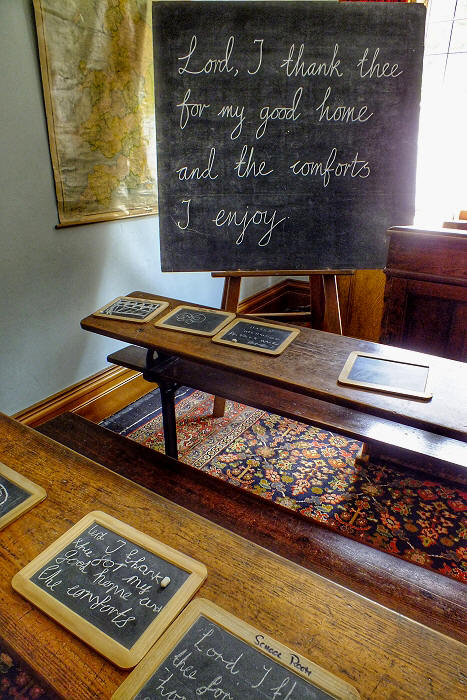 Schulzimmer in Lanhydrock House: Die Viktorianer legten großen Wert auf eine Erziehung, die Gottesfurcht und Gehorsam lehrte ...