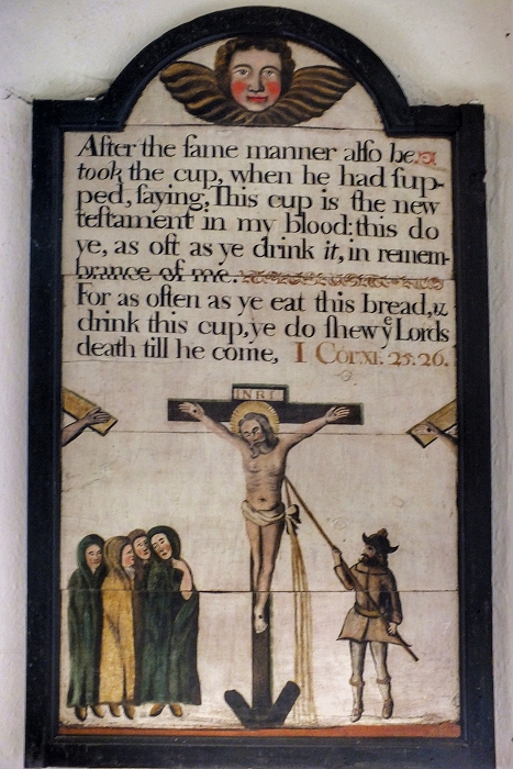Altars der Kirche von Altarnun hängen Spruchtafeln des 17.