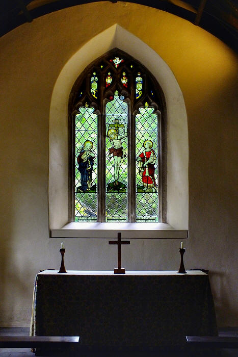 Gedämpftes Licht füllt das Innere der Kirche von St. Just-im-Rosenland ...