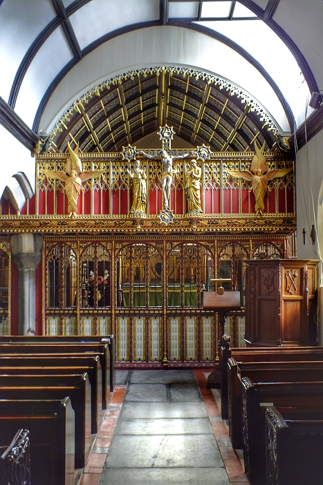 In ihrem Inneren überrascht die Kirche von Little Petherick den Besucher mit einer prächtigen spanisch-italienischen Ausstattung, die so ganz im Gegensatz zu den üblicherweise schlichten Landkirchen Cornwalls steht ...