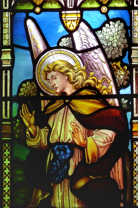 Kirche von Manaccan: Darstellung eines Engels im präraffaelitischen Stil des 19. Jahrhunderts ...