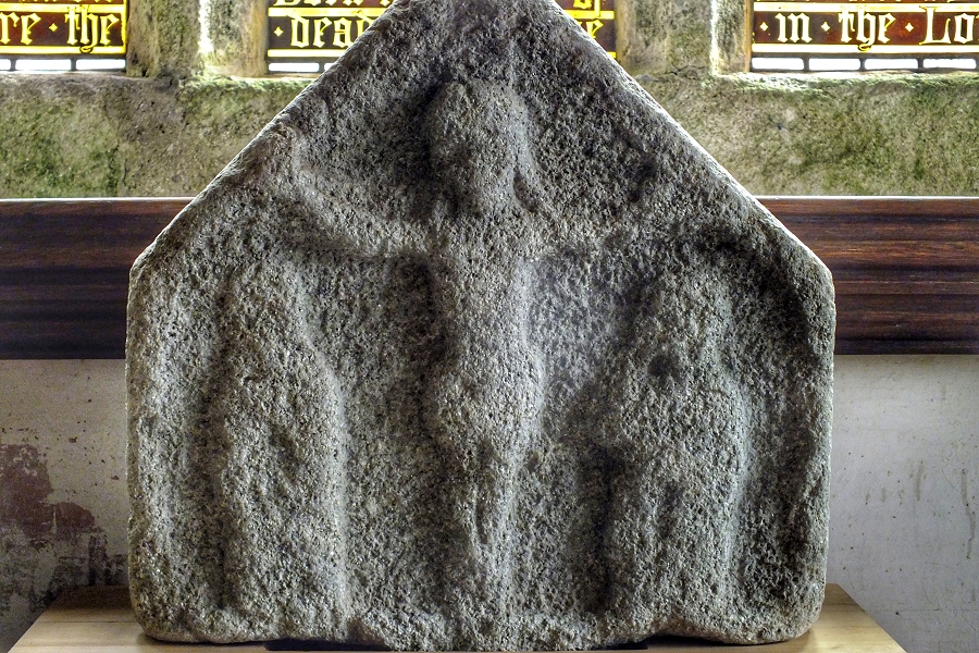 Kreuzigungsgruppe aus dem 14. Jahrhundert (Fundort: Tremearne Farm, Breage) ...