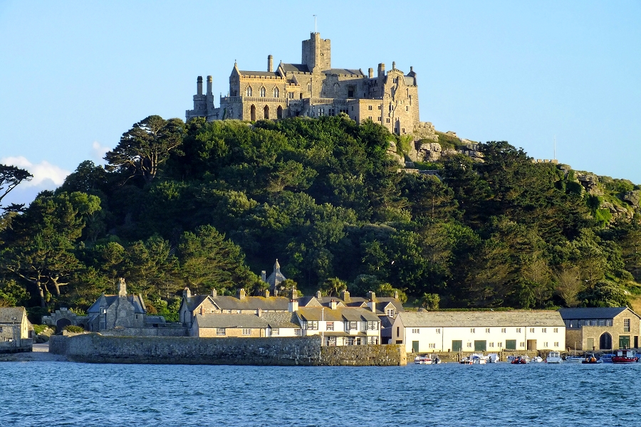 St Michael's Mount ist nur bei Ebbe über einen Damm zu Fuß zu erreichen. Ansonsten muss man eines der kleinen Boote ab Marazion nehmen, um zur Insel zu gelangen ... | |