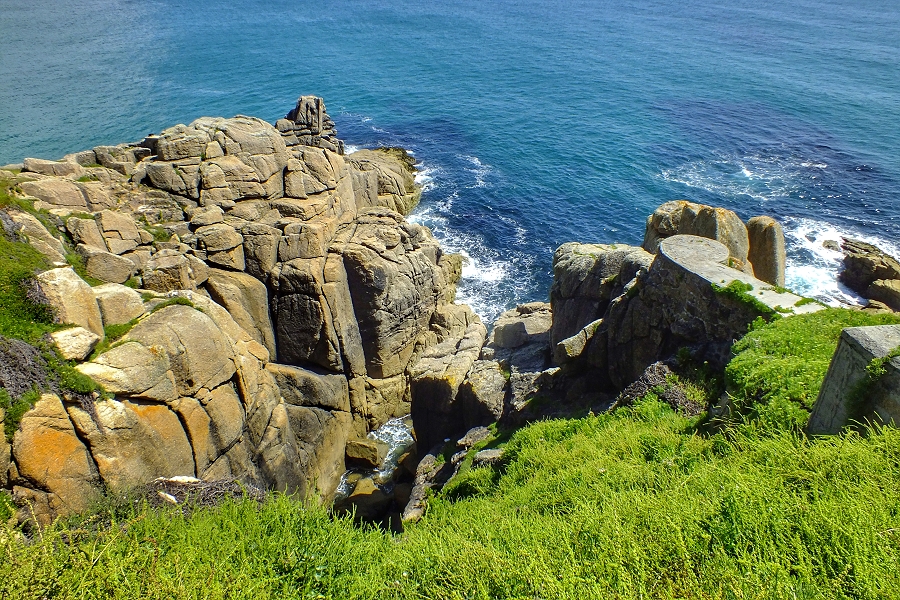 Unterhalb des Minack Theaters fallen die Klippen steil zum Meer ab ...