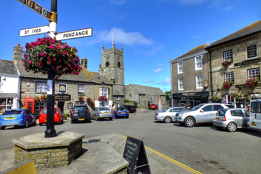 Auf dem Dorfplatz von St. Just-in-Penwith ...