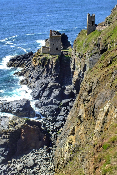 Maschinenhäuser ehemaliger Minen an der Küste bei Botallack ...