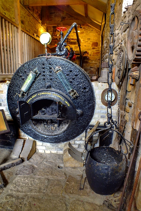 Ausgedienter Dampfkessel aus dem 19. Jahrhundert im Maschinenhaus der Levant Kupfermine ...