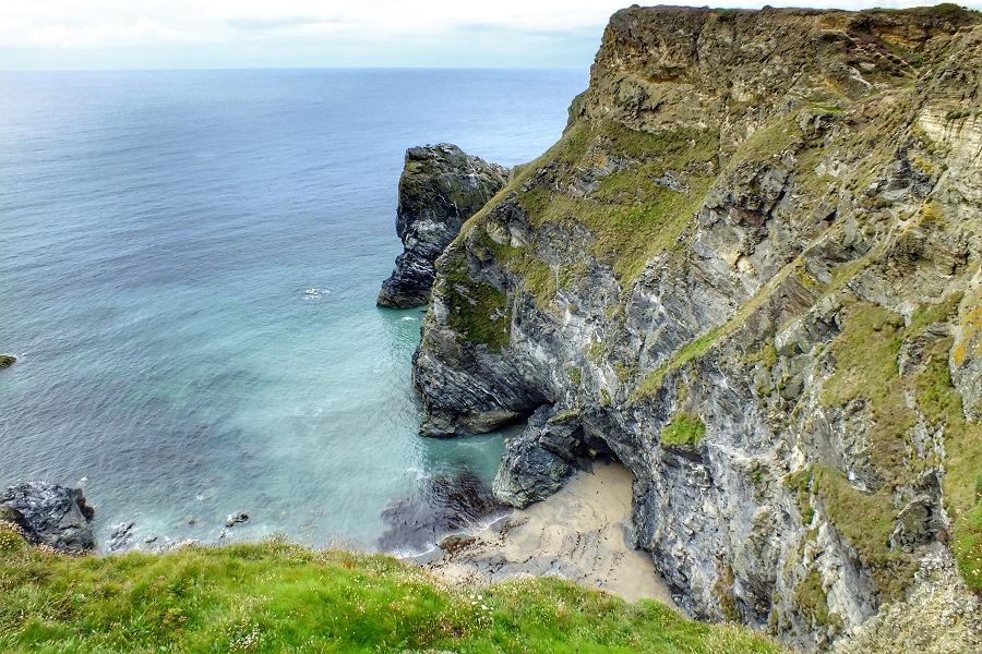 An der Nordseite der Penwith Halbinsel fällt die Küste bei Godrevy Point steil zum Meer hin ab ...