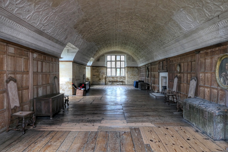 Die Galerie (17. Jhdt.) von Chastleton House ist die längste und älteste mit einem Tonnengewölbe in England ...