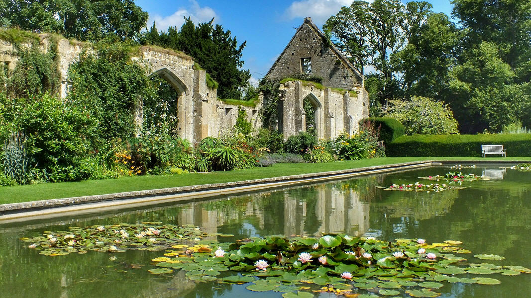 Die Ruine der alten Zehntscheune von Sudeley Castle ist heute malerischer Bestandteil des Parks ...