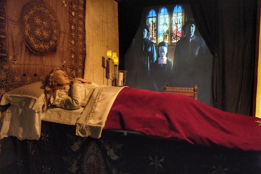 In einer Seitenkapelle von St Mary's hat man in typisch englischer Dramaturgie die Sterbestunde der Königin Katherine Parr nachgestellt ... | |