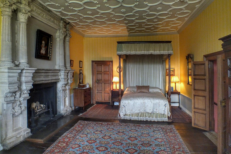 Broughton Castle: Zimmer, in dem Queen Anne, die Frau James I., bei einem Besuch im Jahre 1604 schlief ...