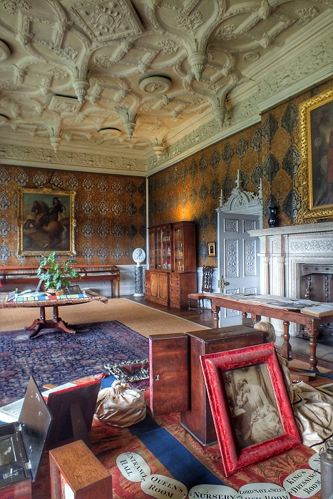 Broughton Castle: Stuckdecke des großen Wohnzimmers (Great Parlour) aus dem Jahre 1599 ...