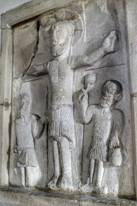 Relief einer Kreuzigungsgruppe aus sächsischer Zeit in der Kirche von Daglingworth ...