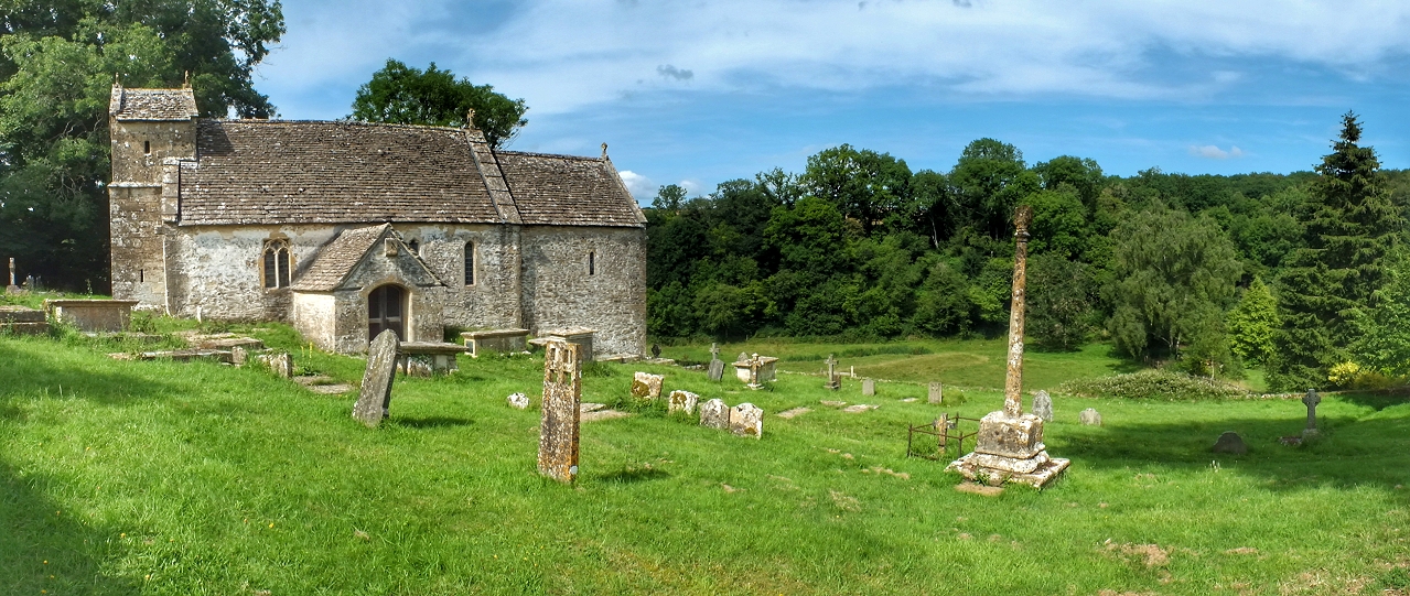 Die kleine Kirche von Duntisbourne Rouse liegt am Rand eines weitläufigen Kirchhofs, in dessen Zentrum ein mittelalterliches Kreuz steht ... | |