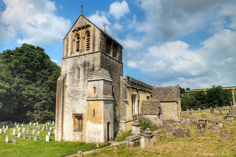 Die normannische Kirche von North Cerney ist eine der schönsten in den Cotswolds ...
