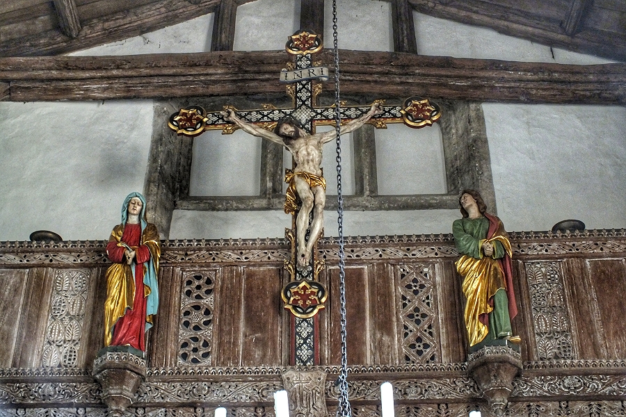 Sängergalerie mit Kreuzigungsgruppe in der Kirche von North Cerney ...