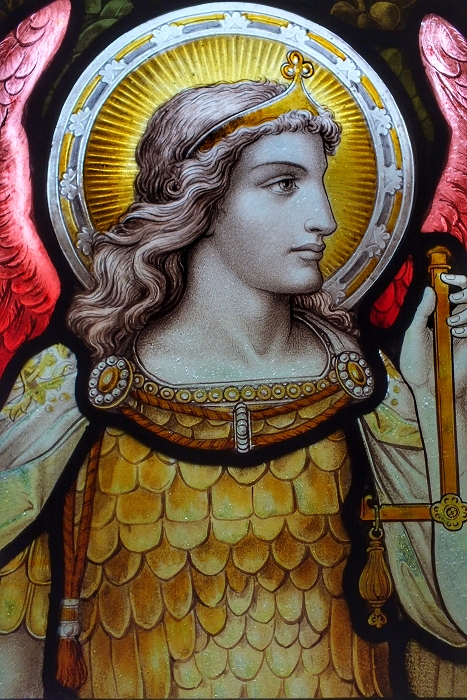 Präraffaelitisches Fenster (Detail) in der Kirche von Miserden ...