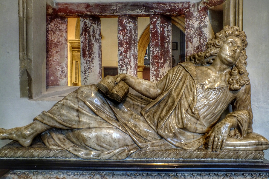 Marienkapelle der Pfarrkirche St John the Baptist, Cirencester: Grabmal für Sir John Master (+1680), einen Gentleman des späten 17. Jahrhunderts und Eigentümer von Abbey House auf dem Gelände der aufgelösten Abtei Cirencester ... | |